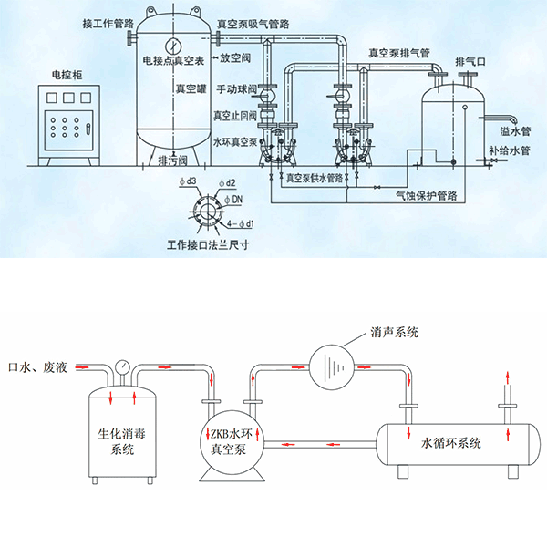 負(fù)壓吸引系統(tǒng)由中心吸引站、吸引管道、負(fù)壓吸引終端等組成。吸引系統(tǒng)的負(fù)壓源是中心吸引站的真空泵機(jī)組通過真空泵機(jī)組的抽吸,使吸引系統(tǒng)管路達(dá)到所需負(fù)壓值,在手術(shù)室、搶救室和各個(gè)病房終端處產(chǎn)生吸力供醫(yī)療使用。 中心吸引站有真空泵、真空罐、負(fù)壓自動(dòng)控制柜、報(bào)警器、排污罐、負(fù)壓管道和終端等組成。真空泵一般設(shè)置2臺(tái),一用一備,保證工作不間斷。真空罐是儲(chǔ)存負(fù)壓的容器,防止真空泵頻繁起動(dòng)。負(fù)壓自動(dòng)控制柜能分別對兩機(jī)組進(jìn)行手動(dòng)控制和自動(dòng)控制啟、停,達(dá)到自動(dòng)切換。當(dāng)壓力達(dá)到報(bào)警壓力值時(shí),進(jìn)行聲光報(bào)警,其報(bào)警壓力下限為-0.073MPa,上限-0.019MPa。停電后自動(dòng)投入運(yùn)行。排污罐用于存放吸引管道系統(tǒng)內(nèi)的污物,定期排放。報(bào)警器安裝在值班室內(nèi),其聲光報(bào)警在60dBa噪聲的環(huán)境下,在1.5m范圍可聽到看到。 中央負(fù)壓系統(tǒng)RVM是由一臺(tái)或多臺(tái)旋片式真空泵、真空儲(chǔ)氣罐、汽水分離器、過濾器(多個(gè))、PLC電氣控制箱等配置組成,通過PLC電器控制箱系統(tǒng)可實(shí)現(xiàn)自動(dòng)/手動(dòng)控制、故障報(bào)警,最經(jīng)濟(jì)節(jié)能的保證系統(tǒng)持續(xù)供氣。 真空系統(tǒng)采用二級過濾:第一級為油、灰塵、雜質(zhì)過濾,第二級為細(xì)菌過濾。VC系列真空泵是該系統(tǒng)的主要用泵,具有結(jié)構(gòu)緊湊、能耗低、噪音低、真空穩(wěn)定、震動(dòng)小。與水環(huán)泵相比更具有環(huán)保、節(jié)能、操作簡單及維護(hù)方便等特點(diǎn)??稍?.5mbar(絕對壓力)和10mbar(絕對壓力)使用。同時(shí),該規(guī)格的真空泵可在密閉的空氣抽氣或長期的真空下使用。并可容忍少量的水蒸汽,但不能處理水、其他液體、腐蝕性氣體或蒸汽。 產(chǎn) 品 特 性